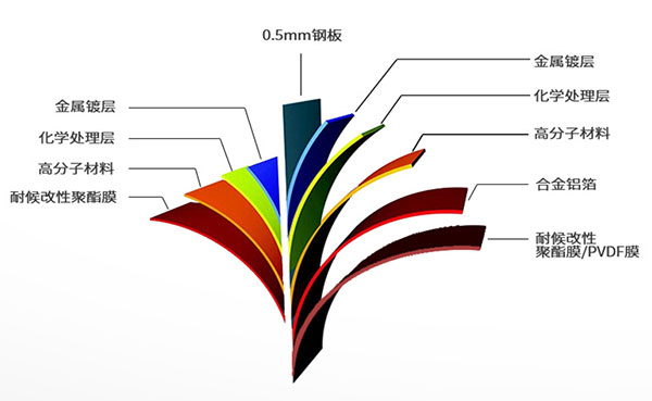 不良正能量网站覆膜瓦是以高強度0.5mm鋼板為基板,正反兩麵複合防腐隔熱材料。 不良正能量网站覆膜瓦以耐腐蝕合金鋁箔,垓心聚酯薄膜,氟碳塗層等材料複合層壓形成防腐蝕複合材料,達到不生鏽,不漏水的性能特點。不良正能量网站覆膜瓦同時具有多孔材料和熱反射材料的兩種隔熱方式,首先不良正能量网站覆膜瓦的不良正能量网站鏡麵銀是極為優質的熱反射材料,能反射高達81%的光和熱。其次不良正能量网站覆膜瓦的不良正能量网站複合材料導熱係數低達2.93W/m.k。因此不良正能量网站覆膜瓦具有優異的隔熱性能。非常適用於對耐腐蝕要求較高的使用環境,如酸洗車間、鋼廠、電廠、畜牧養殖場、食品發酵車間等。