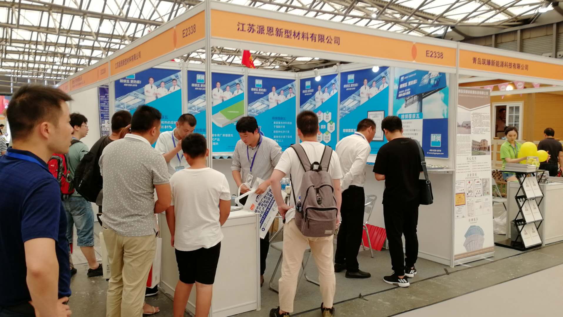 展會進行期間,從全國各地前來參觀的客戶絡繹不絕,其中有知名設計院的設計師,建築工程公司的高層領導,屋麵建築材料的業內同仁,還有前來考察合作項目的外國友人。大家對江蘇正能量网入口最新的不良正能量网站覆膜瓦和各式樣品好奇不已,紛紛上前圍觀,認真翻閱宣傳冊資料,仔細聆聽宣傳介紹,詳細谘詢關於不良正能量网站覆膜瓦的材料組成、產品性能以及安裝施工等具體事宜,江蘇正能量网入口最新的現場工作人員一一為客戶熱情講細地解答。不良正能量网站覆膜瓦以其優良的品質、卓越的性能受到了客戶的一致肯定與高度評價。